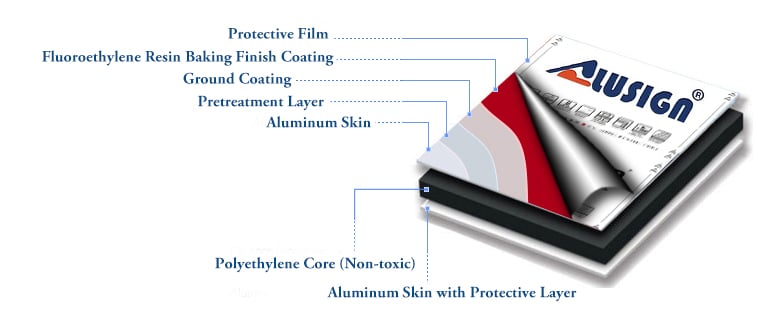 Los paneles compuestos de aluminio (ACP), hechos de material compuesto de aluminio (ACM), son paneles planos que constan de dos láminas de aluminio con recubrimiento de bobina delgado unidas a un núcleo no de aluminio. Los ACP se utilizan con frecuencia para revestimientos exteriores o fachadas de edificios, aislamiento y señalización.